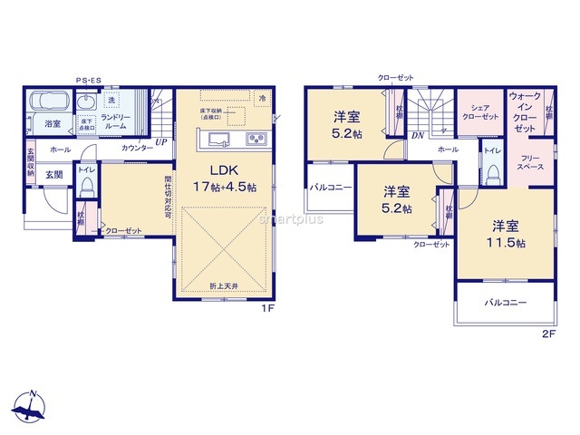 | 間取 | 3LDK+フリースペース (LDK21.5帖、洋室11.5帖、洋室5.2帖、洋室5.2帖) | ||