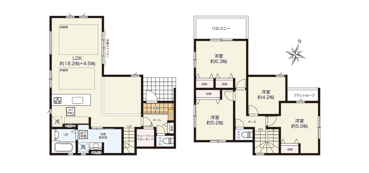 | 間取 | 4LDK (LDK22.7帖、洋室6.3帖、洋室5.9帖、洋室5.2帖、洋室4.2帖) | ||