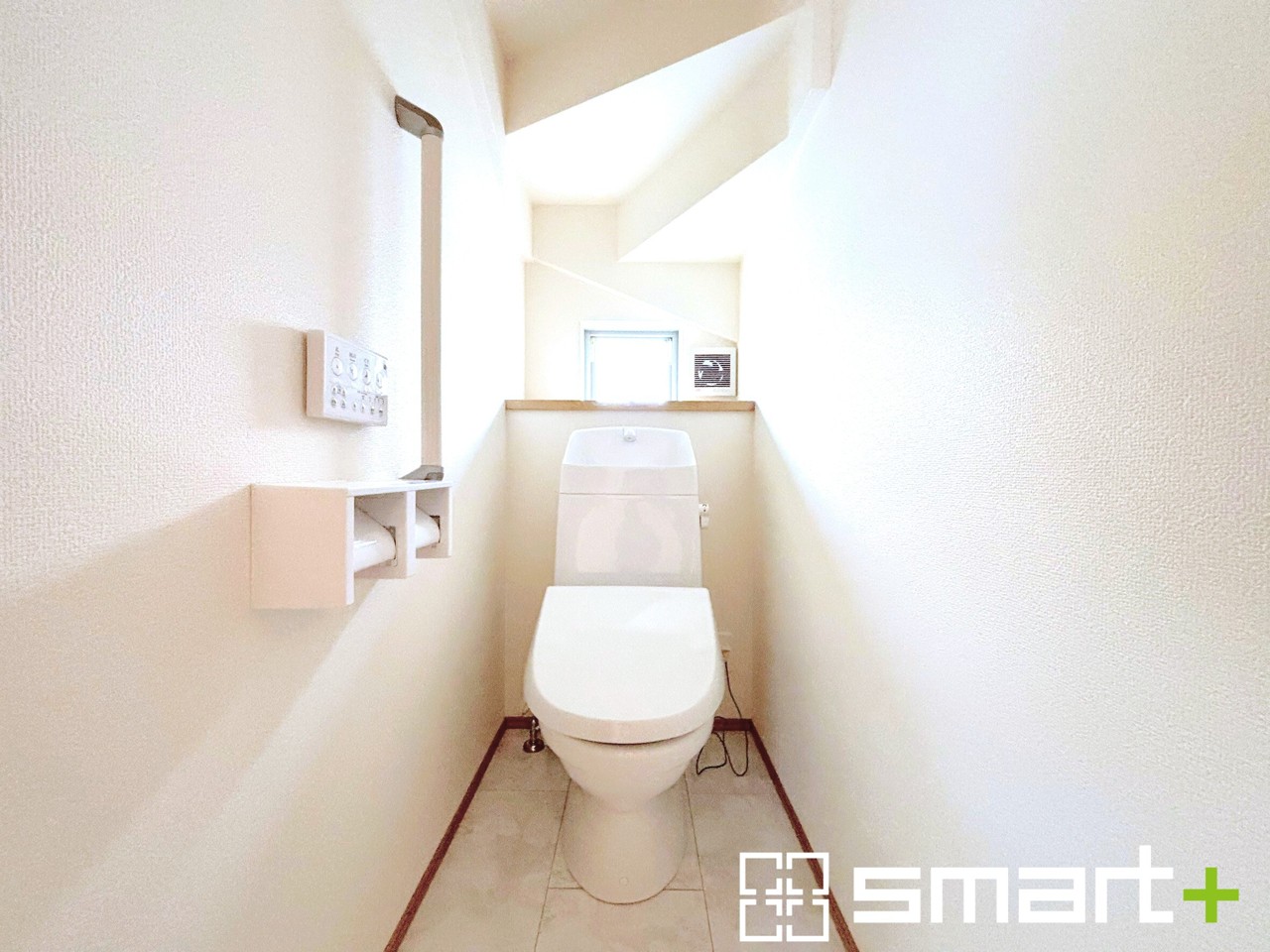 ~小窓付きの明るいトイレ~ ・使用後や掃除の際には新鮮な空気を取り込み換気ができます。 ・背面のスペースにちょっとした棚を設置すれば、トイレットペーパーのストックなども置けますね。