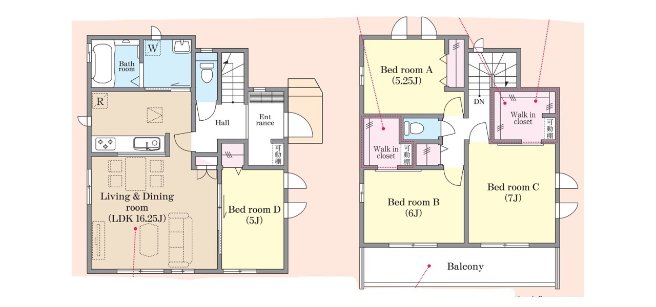 | 間取 | 4LDK + WIC (LDK16.25帖、洋室7帖、洋室6帖、洋室5.25帖、洋室5帖) | ||