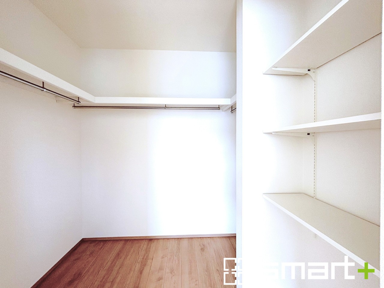 ~憧れのウォークインクローゼット~ ・居室にウォークインを設ける事で季節ものや趣味の用具などもスッキリと収納可能です。 ・ぜひ現地でその便利さをご体感くださいませ。