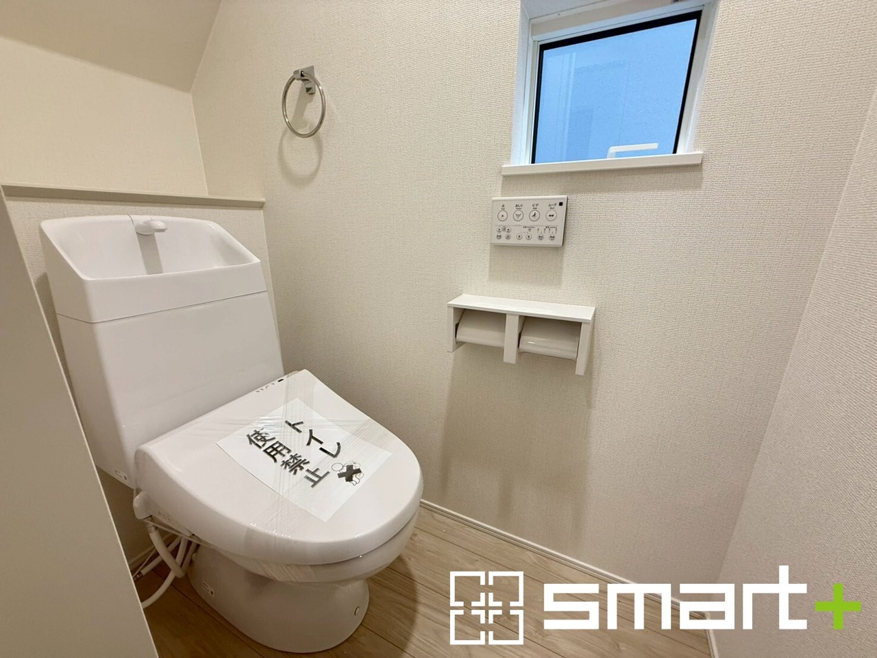 ~小窓付きの明るいトイレ~ ・使用後や掃除の際には新鮮な空気を取り込み換気ができます。 ・背面のスペースにちょっとした棚を設置すれば、トイレットペーパーのストックなども置けますね。