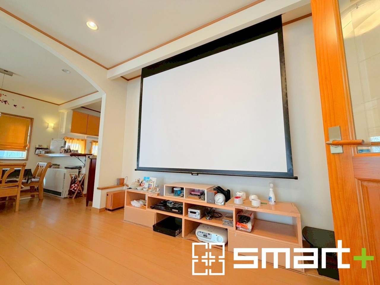 ~大型スクリーン設置済み~ ・リビングには大型のスクリーンを設置済みです。 ・ご家族や友人の集まる空間をより良い時間に演出してくれます。