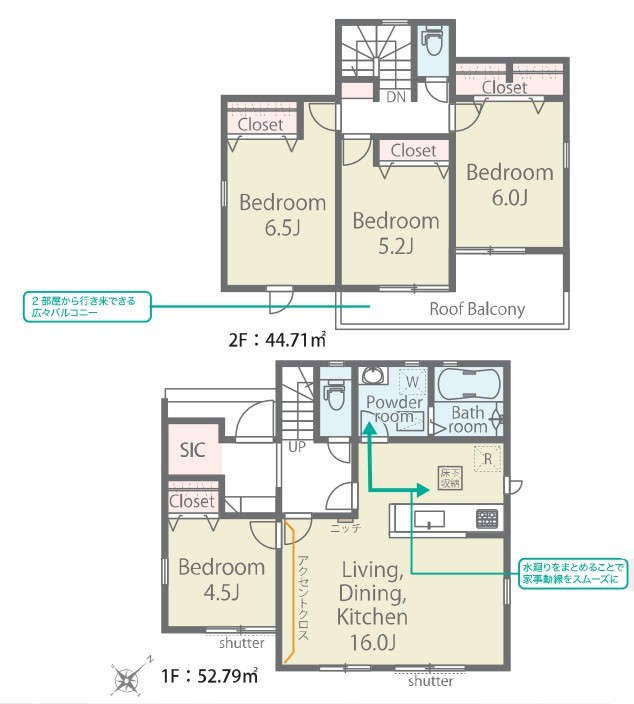 3号棟 ~水回り集中プランを採用~ ・キッチン・洗面など水回りを集中させることで家事のしやすい間取。 ・日々の事なので家事導線もご見学の際にぜひチェックしてみてください。