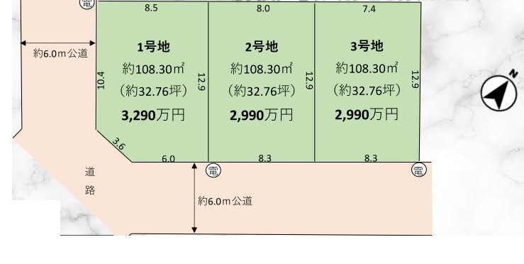 | 土地面積 | 108.3m² ~ 108.3m² 実測 | ||