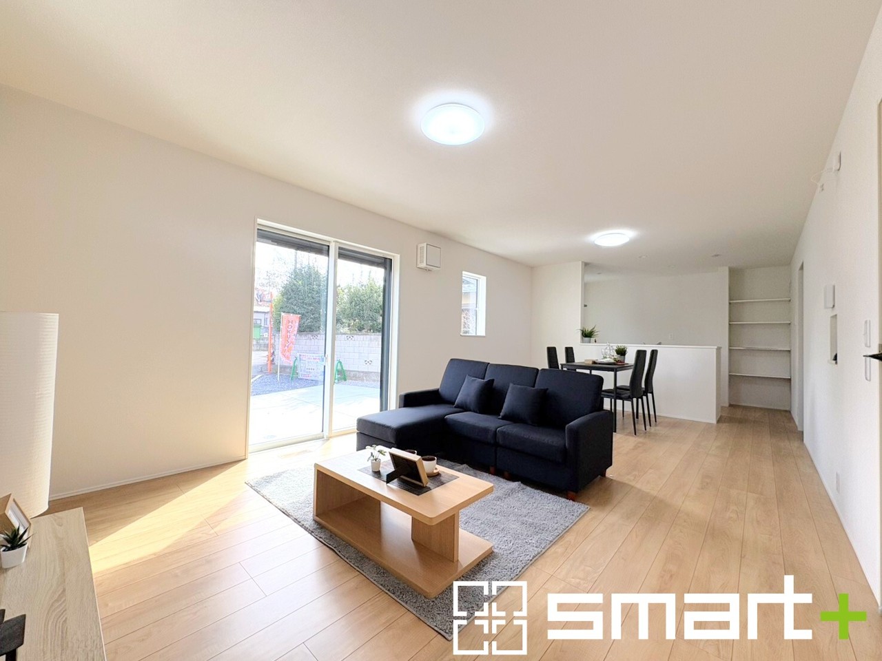 ~日当り良好のLDK~ ・穏やかな陽だまりに包まれる居心地の良いLDKは、ご家族が自然と集まる憩いのスペースに。 ・出来立てのお料理を運ぶのにも、食器の後片付けもラクラクなカウンターキッチン。