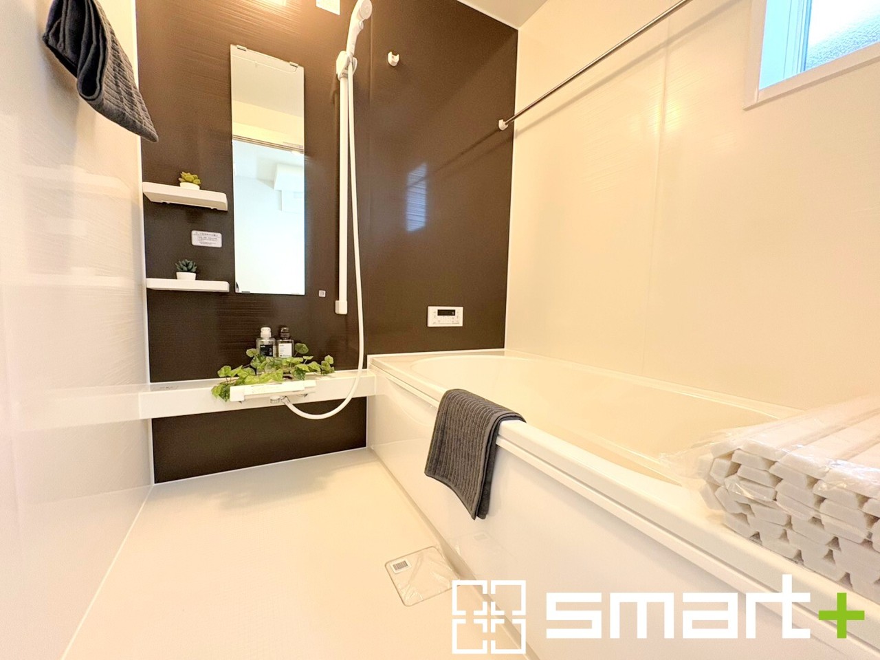 ~浴室乾燥機付きの浴室~ ・浴室には乾燥機が付いているので雨の日でも洗濯物を干すことが可能です。 ・水はけの良い床材など機能面も充実。マイクロバルなどオプションもご相談くださいませ。