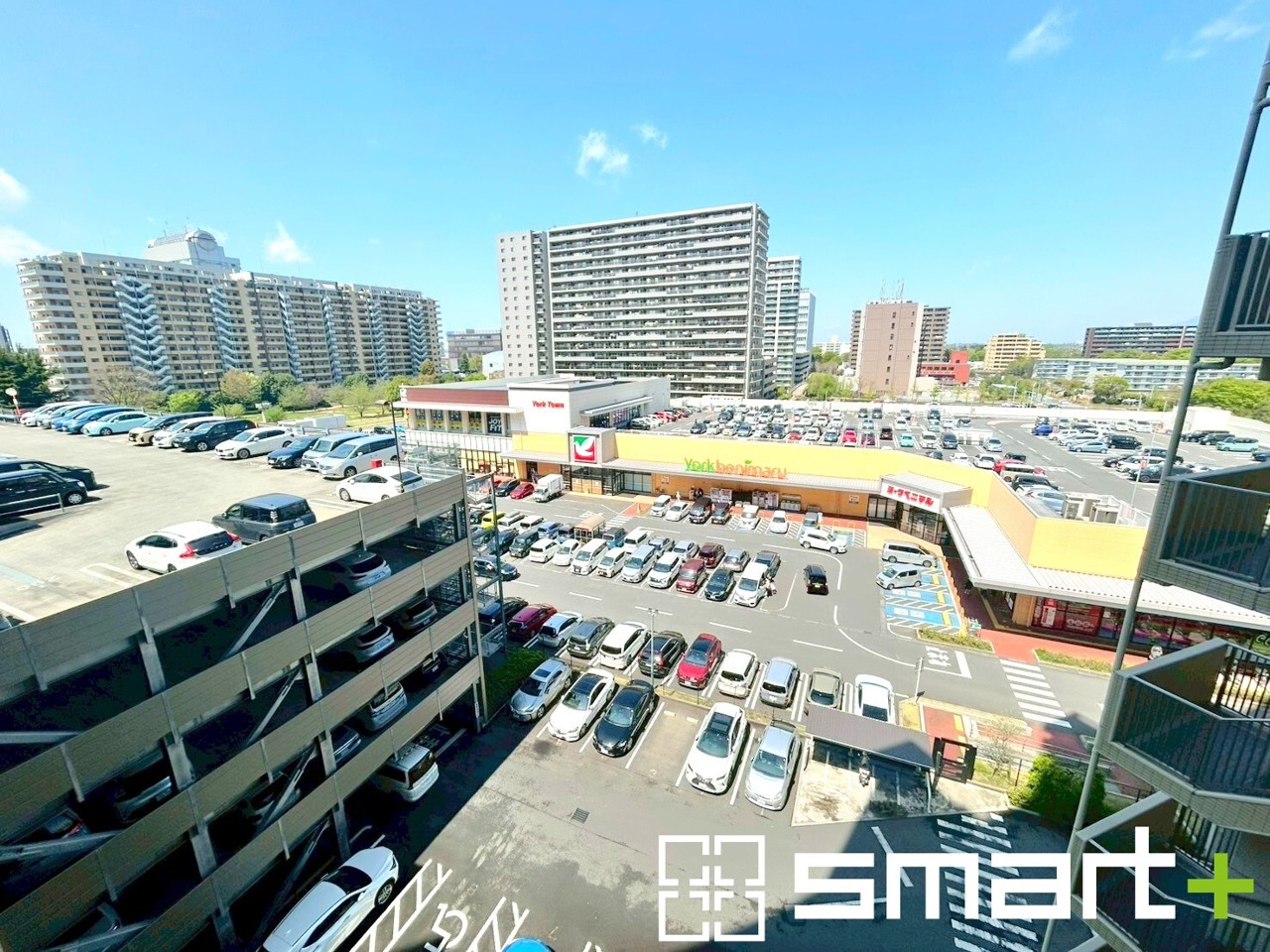 遠くまで広がる空の下、近隣のヨークベニマルをはじめ、日々の暮らしを豊かに彩る緑豊かな環境が広がります。