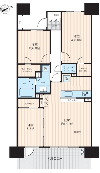 | 間取 | 3LDK (LDK16.5帖、洋室8.0帖、洋室6.0帖、洋室5.5帖) | ||