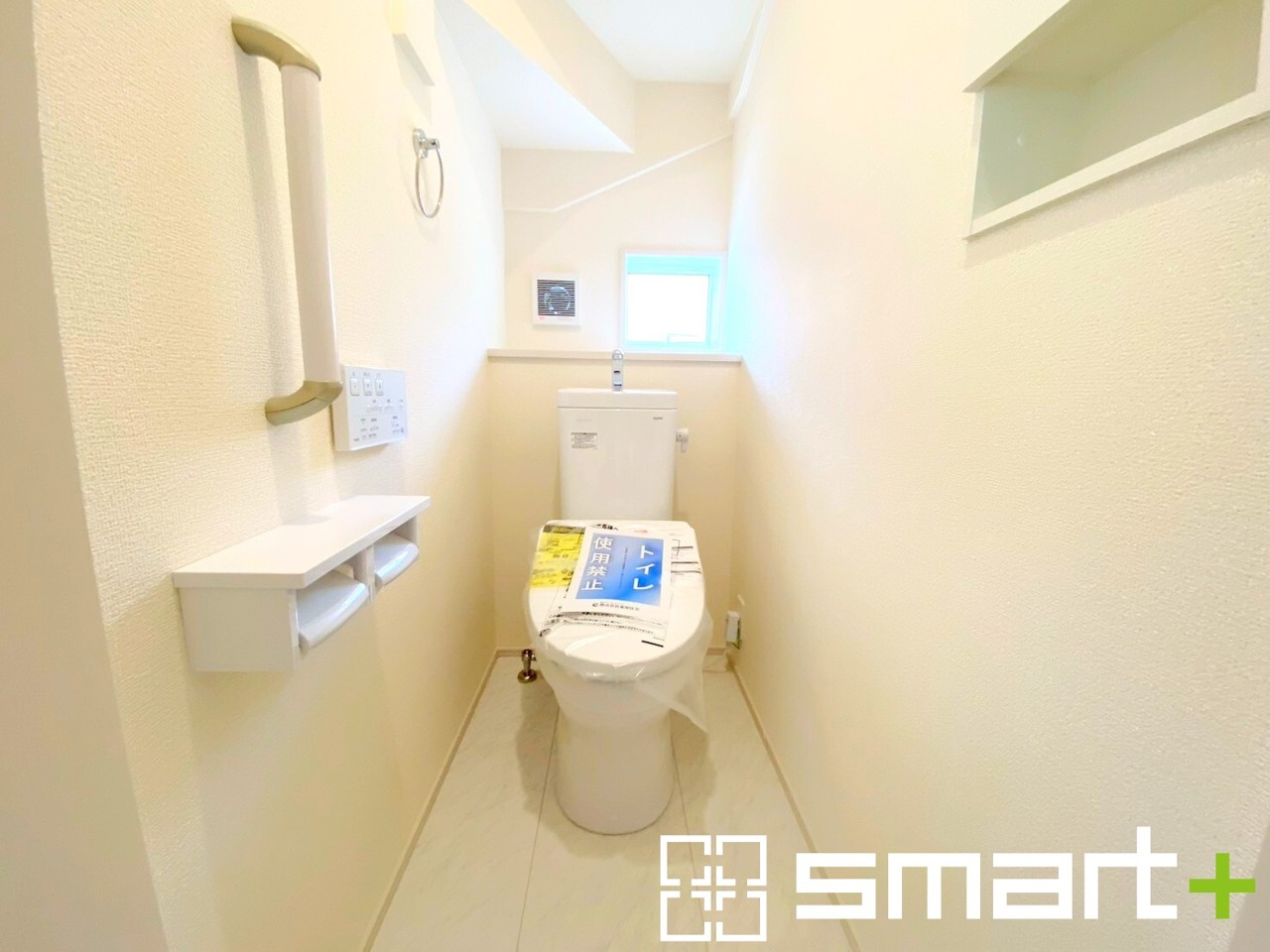 ~窓付きの明るいトイレ~ ・使用後や掃除の際に窓を開ければ、外からの新鮮な空気を取り込み素早く換気ができます。 ・埋め込み収納付きでストックや掃除用具もスッキリ片付きますね。