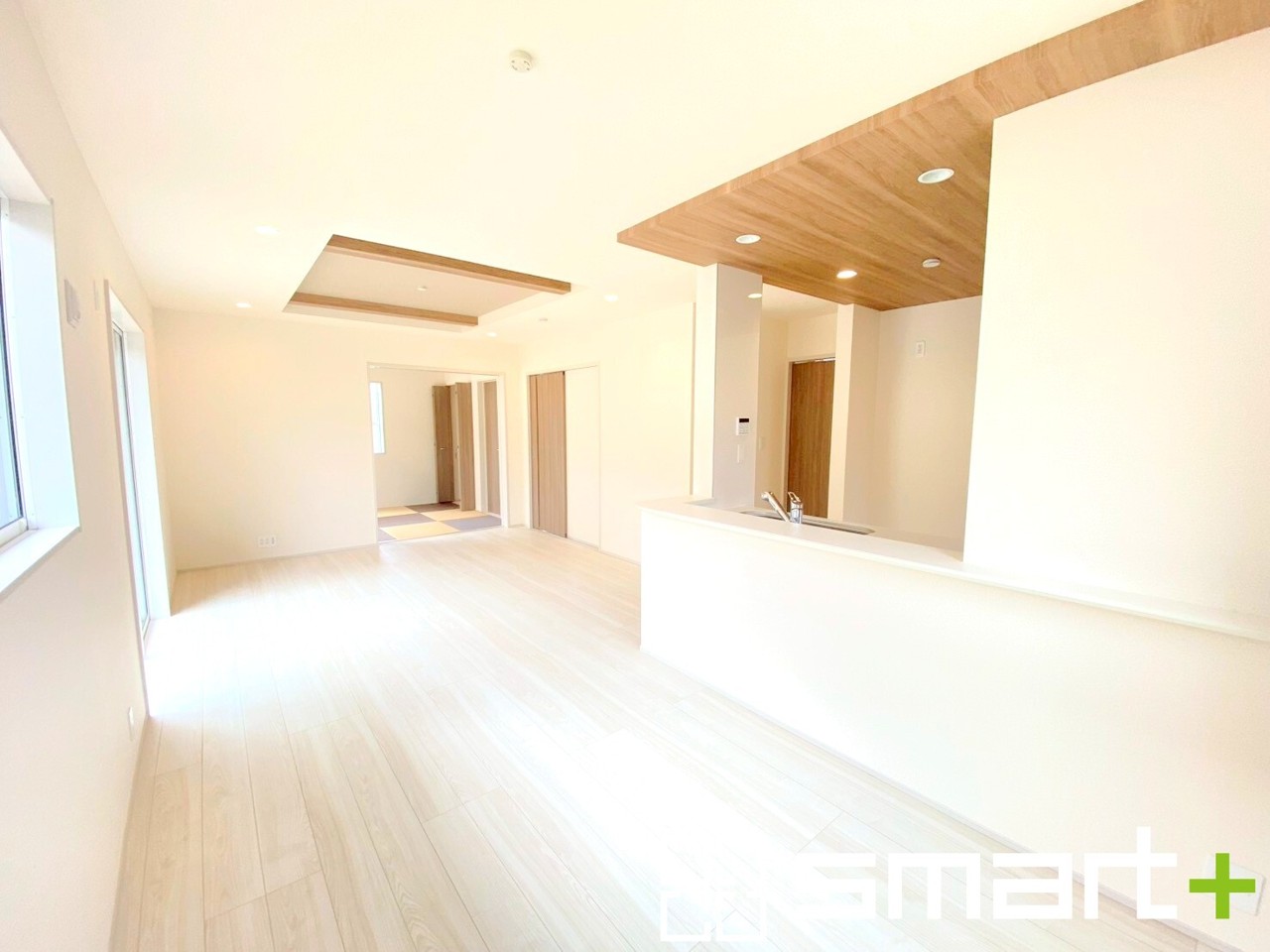 ~リビング横の和室~ ・リビング横には開放感をプラスしてくれる和室付。モダンな洋風タイプでオシャレ感アップ。 ・収納付きでお子様のプレイルームやお昼寝など、用途様々にお使いいただけます。
