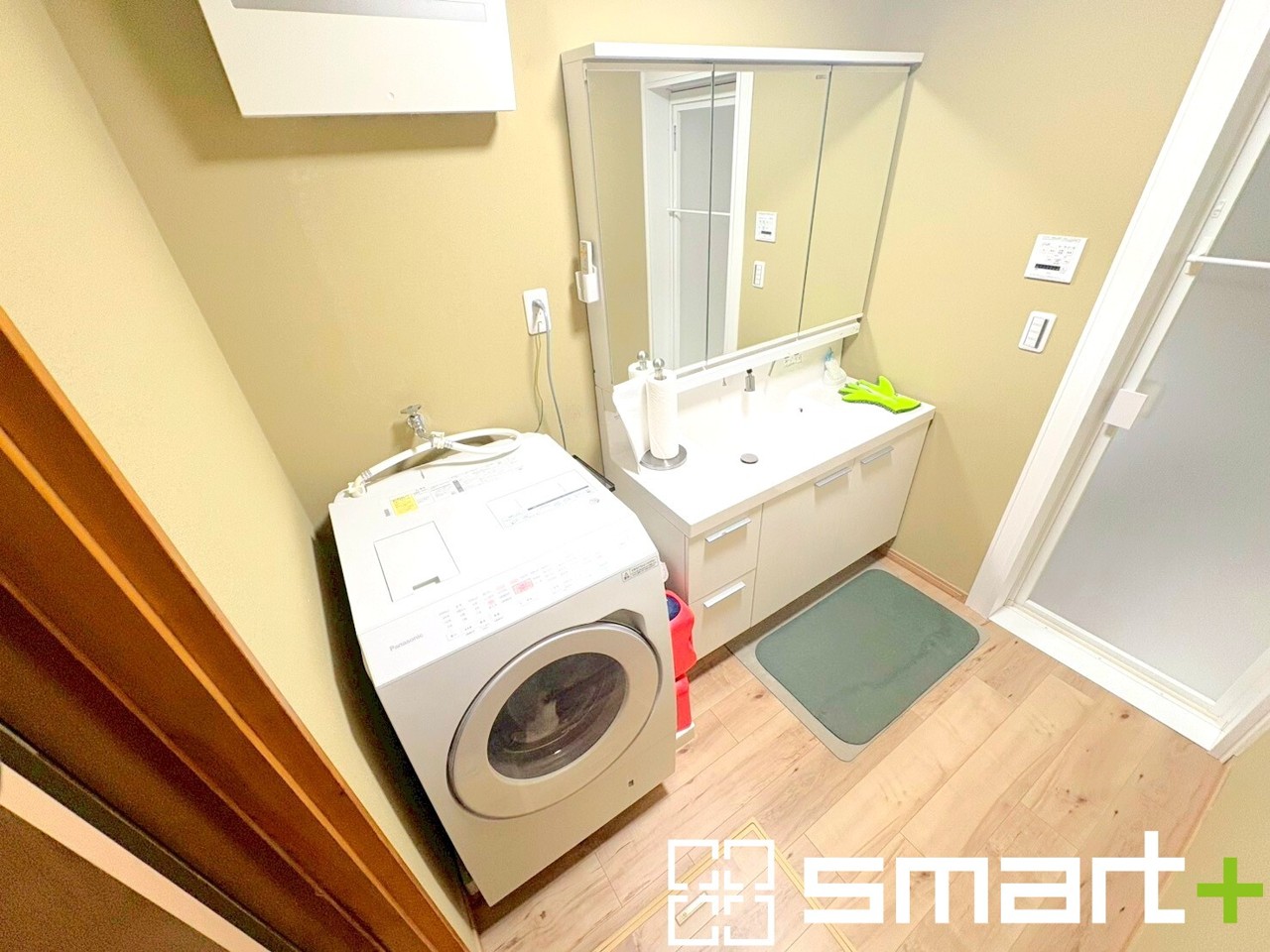 ~人気の三面鏡を採用~ ・洗面台は三面鏡仕様なので鏡の角度を変える事で頭の後ろの方までご確認可能です。 ・鏡の裏が収納になっておりますので、洗面台周りもスッキリと片付きます。