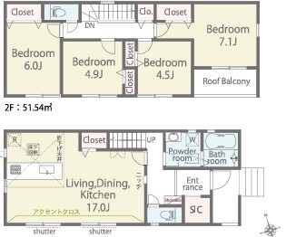 2号棟 ~使い勝手の良い4LDKプラン~ ・シンプルで使い勝手が良く、人気の高い4LDKのプランを採用。 ・収納もしっかりございますので、お家の中がスッキリと片付きます。