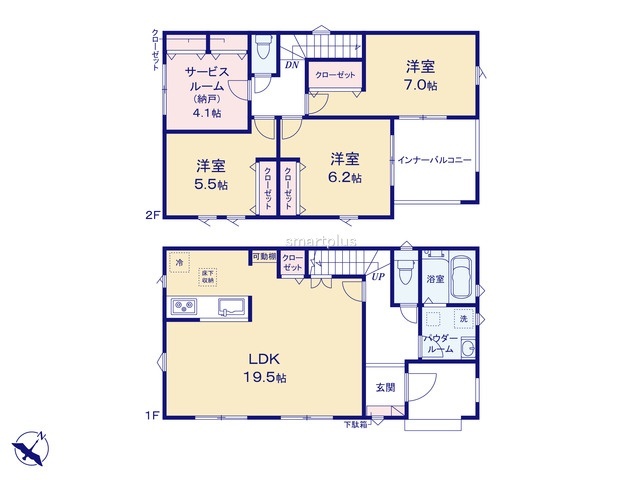1号棟 ~全居室南向きの間取り~ ・各居室が南向きなので穏やかな陽の入る陽当り良好な仕様。 ・明るい空間でくつろぎのお時間をお過ごしいただけます。
