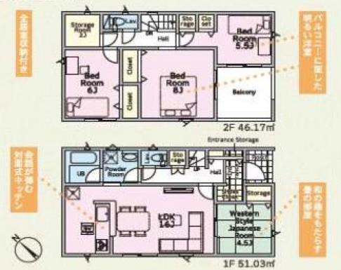 2号棟 ~「納戸」のあるプランを採用~ ・納戸があるので季節物や趣味の道具、普段使わないものなど様々なものがスッキリと片付きます。 ・収納力があるのでタンスなどを置いて部屋が狭くならずに済みます。