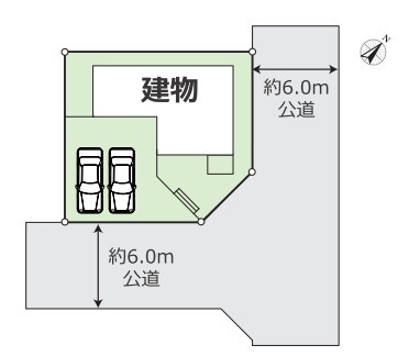 | 接道 | 南東側6M公道に9.5M接道 北東側6M公道に8.5M接道 |