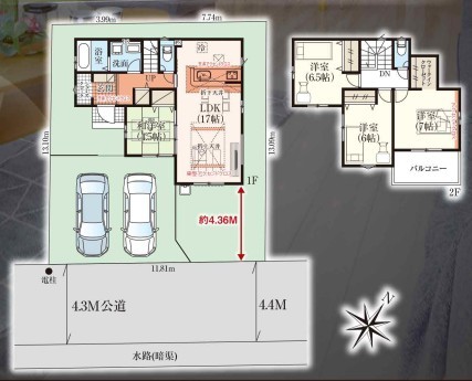 | 接道 | 南側4.3M公道に接道 | 小学校区 | 柏市立逆井小学校(1500m) |