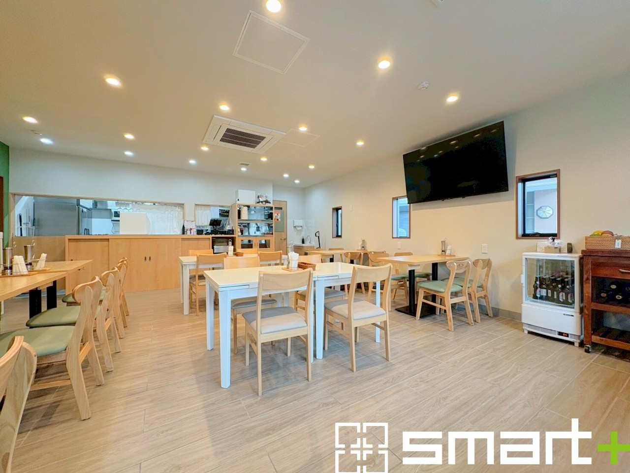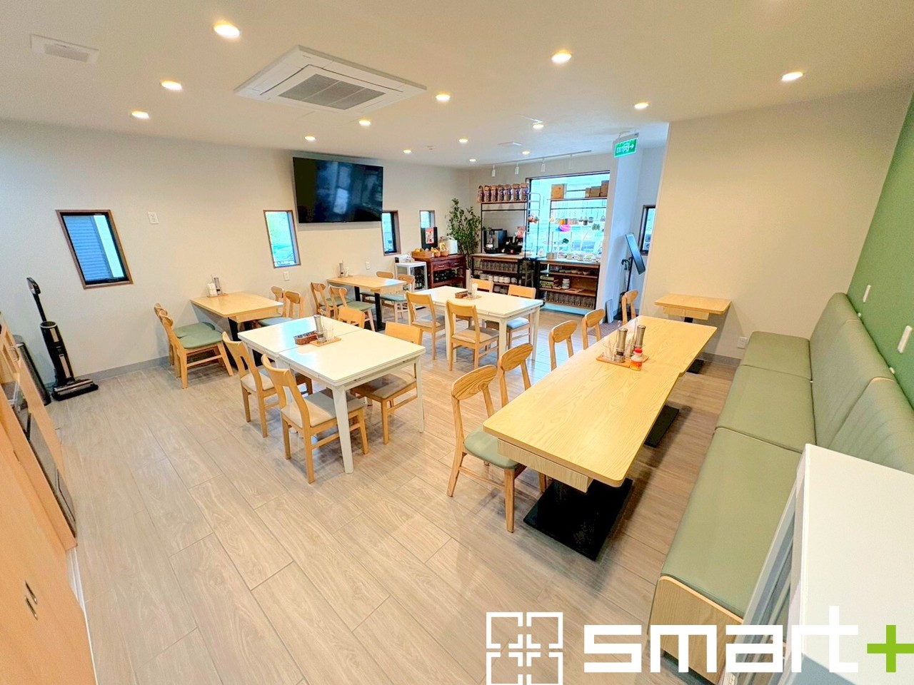 温かみのある木材と明るい照明が心地よい空間は、ゆったりとくつろげる雰囲気に満ちています。座席数の多い1階店舗として、様々なシーンで活用できるこの場所は、訪れる人々に穏やかなひとときを提供します