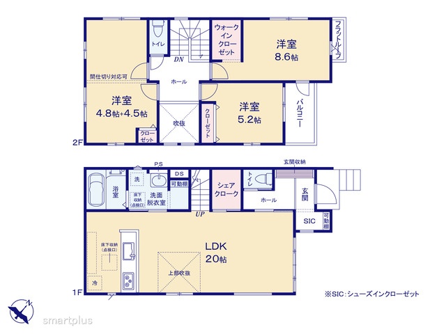 | 設備 | 公営水道、本下水、都市ガス 公共下水、24時間換気システム、吹き抜け、低層住居専用地域、複数路線利用可、シックハウス対策、バルコニー、照明器具、フローリング、火災警報器(報知機)、給湯 |